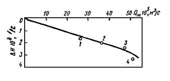 Рис. 6.4. Индикаторная кривая по скважине, построенная в координатах Q