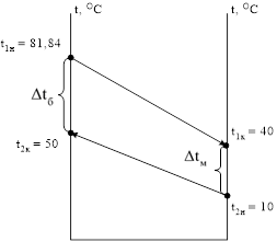 Дtм = t1к – t2н = 40 – 10 = 30 О С,