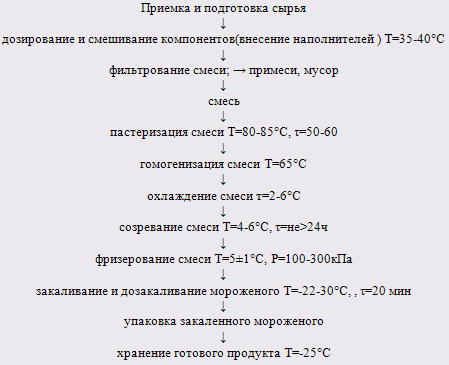 Технологический процесс производства мороженого на молочной основе осуществляют согласно схеме, приведенной на рисунке 1.1