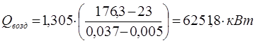 Qk = 40,78 ·(178 – 23) = 6321 кВт