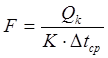 где Qk – тепло калорифера, Вт; К – коэффициент теплопередачи, Вт/м2 ·град; ∆tср – среднелогарифмическая разность температур, °С.