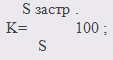 • площадь застройки Sзастр определяется в квадратных метрах: (сумма площадей всех зданий и сооружений складских и вспомогательных помещений);