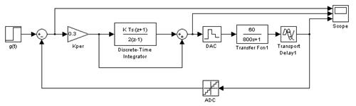 С помощью моделирования системы в пакете Simulinkопределяем параметры настройки регулятора.