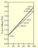 Выходной сигнал абсорбционного датчика влажности представляет собой функцию от температуры и влажности, поэтому для получения высокой точности измерения в широком диапазоне рабочих температур требуется температурная компенсация характеристики преобразования. Компенсация особенно необходима, когда датчик используется в индустриальном оборудовании для измерения влажности и точки росы.