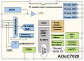 ADuC7020 - микроконтроллер фирмы AnalogDevices для прецизионной обработки аналоговых сигналов, содержащий в своем кристалле полнофункциональную 12-разрядную систему сбора и обработки данных на основе ядра микроконтроллера ARM7TDMI и 12-разрядного АЦП с частотой преобразования 1 МГц. По аналогии с другими интегральными преобразователями данных микроконтроллер характеризуется сочетанием на одном кристалле прецизионного аналогово-цифрового и цифро-аналогового преобразования и флэш-микроконтроллера.