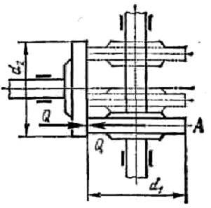Фрикційні варіатори по конструкції вельми різноманітні: лобові (мал.3, з), конусні (мал.3, б), кульові (мал.3, в, г, д), багатодискові (мал.3, е), торцеві (мал.3, ж, з) і клинопасові (мал.3, і). Розрізняють фрикційні варіатори без проміжної ланки (мал.3, а, би, в, е) і з проміжною ланкою (мал.3, г, д, же, з, і). Найпростішим варіантом є так звана лобова передача (мал.4). Циліндрові колеса її встановлюють [на взаємно перпендикулярних валах. Лобову передачу застосовують в тих випадках, коли необхідно плавно змінювати кутову швидкість відомого колеса або мати реверсивну передачу. То і інше досягається пересуванням одного з коліс уздовж його валу. На мал.4 пересуванням ведучого колеса А (різні положення колеса показані штриховими лініями) можна змінити кутову швидкість відомого колеса і зробити передачу реверсивної. Більш докладні відомості про фрикційні варіатори висловлені в спеціальній літературі.