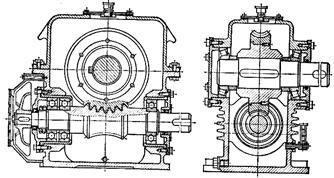 Глобоїдні черв'яки в осьовому перетині мають звичайно трапецеїдальний профіль різьблення (мал.12, г). В передачах з цим черв'яком профіль зубів черв'ячних коліс теж трапецеїдальний. Іноді застосовують глобоїдні черв'яки з увігнутим профілем витків. Оскільки в глобоїдної передачі в порівнянні з черв'ячною циліндровою число зубів колеса і витків різьблення черв'яка, що знаходяться в зачіплююче, більше, то несуча здатність її значно вище (в 1,5...4 рази). Проте глобоїдні передачі вимагають підвищеної точності виготовлення і монтажу і підвищеного охолоджування (редуктори з глобоїдними передачами при своїх малих габаритах сильно нагріваються). Тому їх застосовують рідко і притому при важких навантаженнях і сталих режимах роботи.