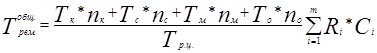 где Тк ; Тс ; Тм ; То – суммарная трудоемкость (слесарных, станочных и прочих работ) соответственно капитального, среднего, малого ремонтов и осмотров на одну единицу ремонтной сложности;