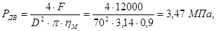 где Рдв - давление на входе в гидродвигатель, Рдв= 3,47 МПа;