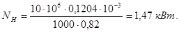 - полный К.П.Д. насоса, по технической характеристике ηН=0,82.