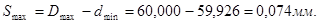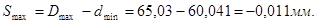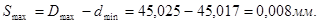 Smax=Dmax-dmin=47.025-46.989=0.036 мм