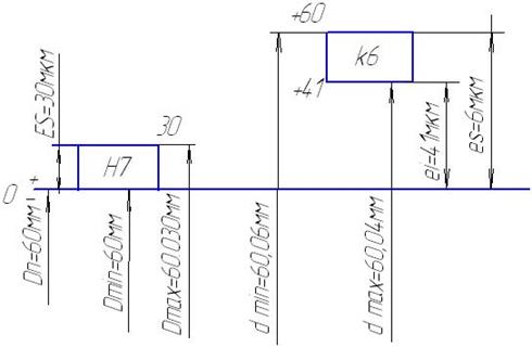 рис 7.2. Схема расположения полей допусков сопряжения подшипника и корпуса редуктора