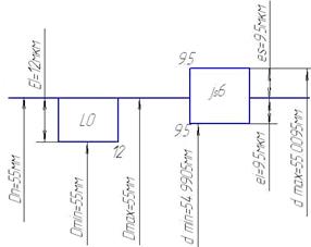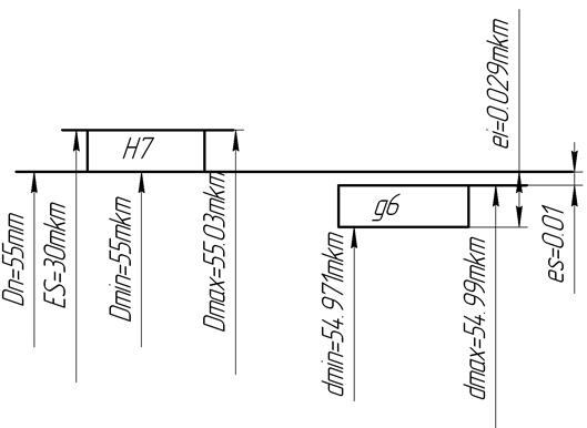 Nmax=dmax-Dmin=55,0095-54,988= 0,0215 мм