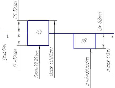 Рис. 2.3.Схема взаиморасположения полей допусков