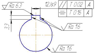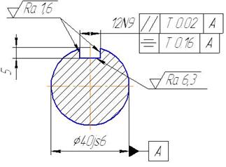 на ширину паза вала N9, на ширину паза втулки js9, на ширину шпонки h9.Принимаем шероховатость на ширину паза вала и втулки - Ra 0.4, а на высоту паза втулки и вала - Ra 0.2