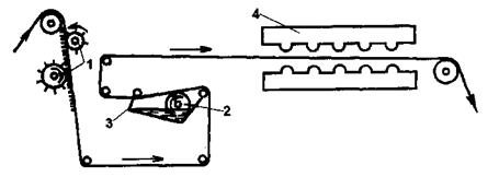 Ворсовые нити сматываются с бобин, установленных на шпулярнике 1 (рисунок 3), заправляются в специальные трубки 2, из которых поступают к питающим валикам 3 с наждачной поверхностью. Скорость питающих валиков можно изменять. Соответственно меняется величина подачи ворсовой нити в зависимости от требуемой высоты ворса.