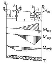 - радиальная и осевая нагрузки на подшипники, возникающие при действии номинального момента T