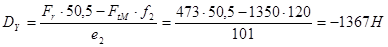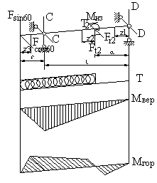 Исходные данные: радиальные нагрузки на подшипники Fr С = 3255Н , FrD =1514Н ; частота вращения вала п2 = 215об/мин ; диаметр вала под подшипниками dn = 40мм ; расстояние между подшипниками l =101мм ; требуемый ресурс подшипников [ Lh ] =15000 ч ; режим работы – умеренные толчки; температура подшипникового узла t < 100˚С .