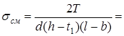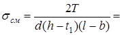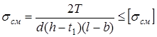 где Т – вращающий момент, передаваемый шпонкой; d – диаметр вала на котором установлена шпонка; b , h , l – соответственно ширина, высота и длина шпонки; t 1 – глубина паза вала под шпонку.