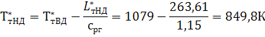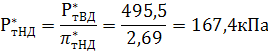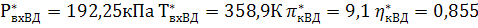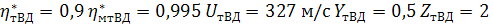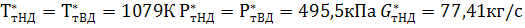 Параметры турбины (НД – низкого давления, ВД – высокого давления):