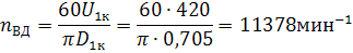 65. Определение окружной скорости U1к на наружнем диаметре первой ступени компрессора ВД и частоты его вращения. Величину U1к принимаем в зависимости от типа компрессора – ступень сверхзвуковая: U1к =420м/с