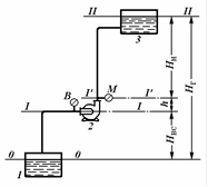 p – тиск у ємності 1 , з якої насосом 2 всмоктується рідина (назвемо її умовно прийомною ємністю);