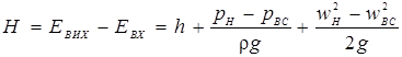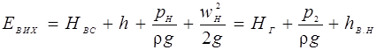Аналогічно w 2 << w ; зневажаючи величиною w 2 і з огляду на те, що H BC + h + H H = H Г – геометричній висоті підйому рідини, визнаніжо за рівнянням (3.9) питому енергію рідини на виході з насоса: