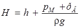 h – відстань по вертикалі між рівнями установки манометра М и вакуумметра В.