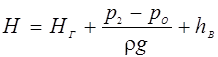 h В = h В.Н. + h В.ВС. – сумарний гідравлічний опір усмоктувального й нагнітаючого трубопроводів. Рівняння 3.12а використовується при підборі насосів для технологічних установок.