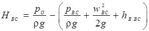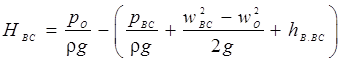 Швидкість рідини w зневажно мала в порівнянні зі швидкістю в усмоктувальному трубопроводі, тобто порівняно з w BC , і тому може бути виключена з рівняння (3.8). Тоді із цього рівняння питома енергія рідини на вході в насос: