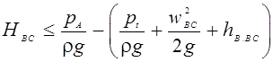 p BC – тиск в усмоктувальному патрубку насоса;