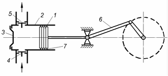 Рис. 3 - 16. Схема діафрагмового (мембранного) насоса: 1 – циліндр; 2 – плунжер; 3 – діафрагма (мембрана); 4 – всмоктувальний клапан; 5 – нагнітальний клапан. |