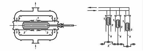 1 , 2 – ротори; 3 – корпус.