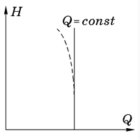 Насос споживає найменшу потужність при закритій напірній засувці (при Q = 0). Найбільш сприятливий режим експлуатації відцентрового насоса при даному числі обертів відповідає максимуму на кривій H – Q .