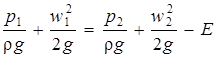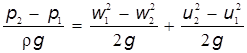 Рівняння Бернуллі для перетинівI’ – I’ іII – II :