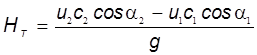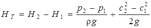 Віднімаючи з лівої частини рівняння (3.9а) ліву частину рівняння (3.8а), знаходимо напір насоса: