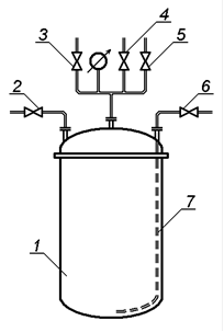 Рис. 3 - 24. Монтежю: 1 – корпус; 2 – 6 – крани; 7 – труба для перетискування. |