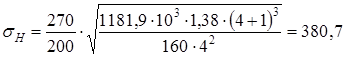 где К1 - коэффициент, учитывающий степень ответственности передачи, К1 = 1 [7,с.20];