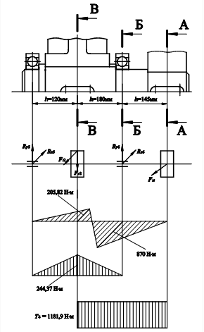 Сечение Б - Б. В этом сечении действуют максимальные крутящий и изгибающий моменты. Концентрация напряжений обусловлена посадкой подшипника с гарантированным натягом.