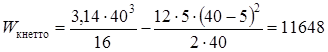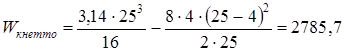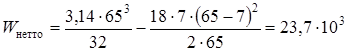 Момент сопротивления изгибу нетто сечения вала определяем по формуле (11.13)