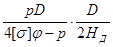 [σс ] = Кс Е(s - c)/D = 0,073·2,10·105 (0,020 – 0,001)/2,80 = 104 МПа