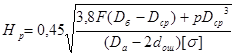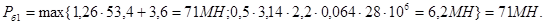 Рб = 0,785(D1 2 – D2 2 ) ·σ = 0,785(3,122 – 2,652)1,05·106 = 1,76 МН
