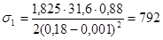 = 7,10/[π(2,80+0,020) – 0,5](0,020-0,001) = 44,7 МПа