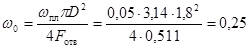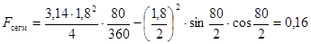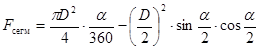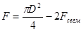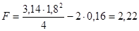 F = 0,785(D1 2 – D2 2 ) = 0,785(3,122 – 2,652) = 2,13 м2