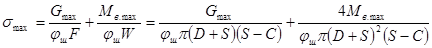 σс = Gmax /[π(D+S) – d](s - c) =