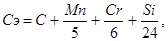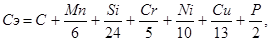 О свариваемости стали известного химического состава судят по эквивалентному содержанию углерода. Для этого каждый легирующий элемент оценивают с точки зрения его влияния на твёрдость (закаливаемость) стали по сравнению с влиянием углерода. Эквивалентное содержание углерода, %, может быть определено из выражения: