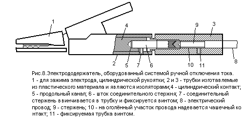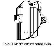 Средства индивидуальной защиты. При электродуговой ручной сварке зона сварки (сварочная дуга, расплавляемый металл) является источником возможного травмирования электросварщика излучением и теплом сварочной дуги и брызгами расплавленного металла. Для защиты глаз, лица, кожного покрова головы и шеи сварщика от излучений и брызг металла, а также частичной защиты органов дыхания от непосредственного воздействия выделяемых при сварке паров металла, шлака и аэрозолей предназначены защитные щитки. Щитки изготавливаются двух основных видов: наголовные и ручные. Наголовный щиток более удобен, так как освобождает руку сварщика от необходимости удерживать ручной щиток. Щитки изготавливают углублённой формы для того, чтобы они хорошо защищали все открытые части головы и шеи сварщика. При пользовании щитком для обзора конструкции не обязательно открывать щиток назад на голову, достаточно поднять крышу рамки со светофильтром и осмотреть конструкцию через прозрачное защитное стекло, а также подготовить стык к сварке, зачистить кромки, удалить шлак и выполнить другие операции, требующие хорошей видимости.