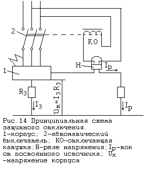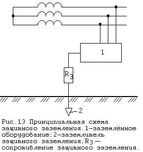 Назначение защитного заземления - устранение опасности поражением электрическим током при появлении напряжения на конструктивных частях электрооборудования, т.е при замыкании на корпус.