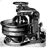 Ближе к современной мясорубке, хотя бы внешне, стоит так называемая мясная мельница (рис. 4). В цилиндрическом корпусе вращался от рукоятки вал с выступающими из него в винтовом порядке стальными штифтами. Они продвигали кусочки крупно нарезанного мяса, заправленные в воронку, через ряд коротких ножей, выступающих сверху и снизу половинок корпуса. Попадая между этими ножами, мясо как бы настригалось. Полученный фарш, как и в современной мясорубке , выходил с другого конца цилиндра.