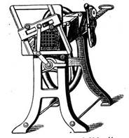 Для домашних кухонь имелись похожие ручные машины меньших размеров. В них изогнутые ножи поднимались и опускались движением рычага, который качала хозяйка.
